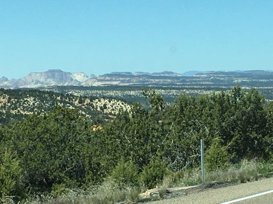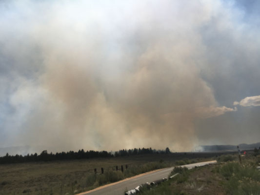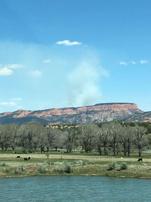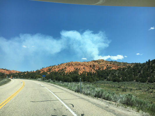Aus dem Canyon raus sahen wir dichten Rauch am Horizont. Der US Forest Service brannte gerade ein Stück Wald ab um gefährliche Wildfeuer zu verhindern. Smokey der Bär legt selber Feuer, schwer verständlich, aber notwendig.
