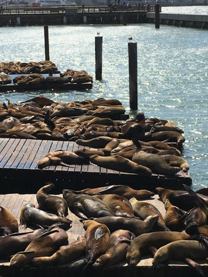 Am Abend in Frisco angekommen, bezogen wir das Hotel und gingen spätabends noch am Fisherman`s Wharf essen, Fish& Chips und anderes Meeresgetier. Aufgefallen sind uns auch die vielen Homeless People in der Gegend.