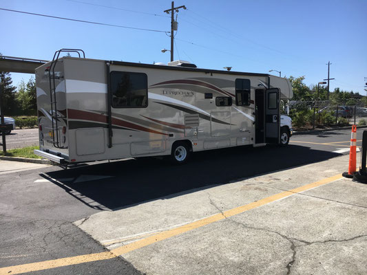 Danach liess der Regen nach und wir suchten nach drei Tagen ohne Full Hook-Up (Camping ohne Wasser-Anschluss und auch -Abfluss) - alle Tanks waren voll oder eben leer - verzweifelt eine Dumping Station. Die Campgrounds in den State Parks hatten keine solche. Wir wurden fündig und machten uns ans Werks. Das Ablassen des Schmutzwassers (Grey für Abwasch- und Duschwasser, Black für WC) ging ja noch gut, aber das Befüllen des Frischwassertanks klappte nicht. Der Anschluss war vermurkst und erst mit Hilfe eines alten WoMo-Hasen aus Oregon klappte es. Wir verloren viel Zeit mit der Übung...n