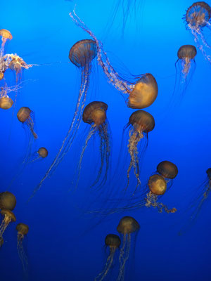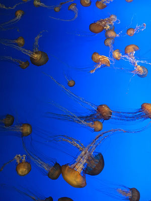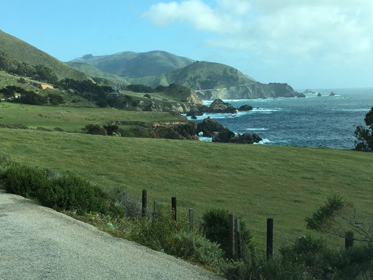 Nach einer schönen Fahrt der Küste entlang machten wir einen Stopp in Monterey und besuchten das Aquarium. Wir fragten uns, was spannender sei: die Aquarien oder die Wale, die es vom Aquarium aus "live" im Meer zu sehen gab. Nachdem wir uns mit einer Familie aus Ins ausgetauscht hatten (deren Mädchen waren im Alter unserer beiden Kids), fuhren wir weiter. Weiter ging die Fahrt auf dem "Einser" bis zum Kirk Creek Campground. Dort war unser Platz, den wir schon für eine Nacht vorher gebucht hatten (und nicht storniert), schon belegt. Wir mussten die speziellen Buchungsbedingungen der amerikanischen Nationalparks kennenlernen. Man begleitete uns dann auf einen Ausweichplatz. Nachdem wir den ersten Frust überwunden hatten, machten wir ein zünftiges Feuer und grillieren das erste Mal im Westen. Gut gesättigt gingen wir zu Bett.