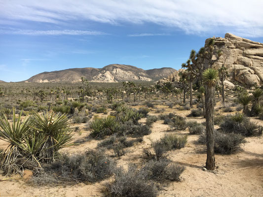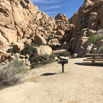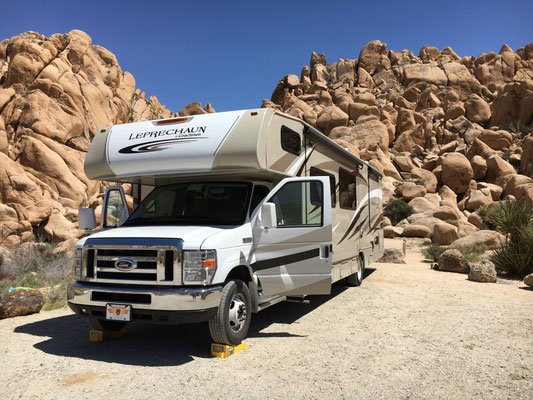 Ziemlich verspätet fuhren wir aus Irvine ab und der Abendverkehr nahe L.A. führte dazu, dass wir im Finstern Richtung Joshua Tree fuhren und im Stockdunkeln unsere Site im Park bezogen. Wir hatten keine Ahnung, wo wir waren, Aber das Erwachen am nächsten Morgen war einmalig!