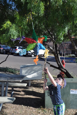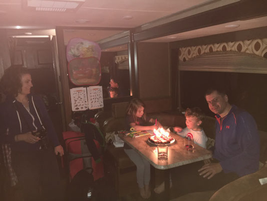 Nachdem wir schon ein gutes Stück Weg hinter uns hatten, machten wir nahe der mexikanischen Grenze einen Halt und dekorierten die Raststätte für die Geburtstagsparty von Vali. Mit Kuchen, Ballons und einem Picknick feierten wir den Geburtstag. Vali hat es gut gefallen.