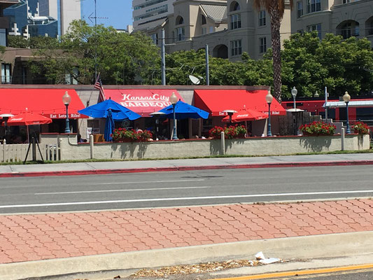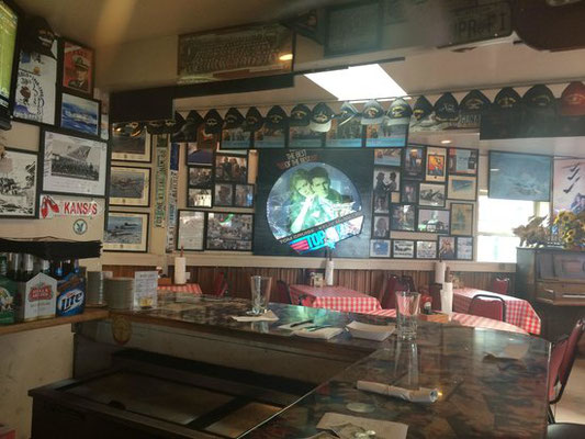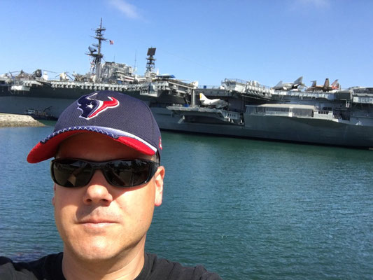Clud und die Kinder blieben auf dem Campground zum Spielen. Chrigu und Mike machten sich nochmals auf den Weg zum Hafen, um die USS Midway zu besichtigen. Ein Zwischenstop wurde im Kansas City BBQ eingelegt. Leider war die Bar aber noch geschlossen. Kansas City BBQ? Jawohl, und das Klavier stand auch noch da. Für Film-Laien: die Bar diente als Drehort für eine der Schlüsselszenen im Film "Top Gun". Maverick (Tom Cruise) und Goose (Anthony Edwards) spielten auf dem Klavier "Great Balls of Fire". Und wo Carol (Meg Ryan) die berühmten Worte sprach: "Goose, you big stuuuuuud! Take me to bed now or loose me forever".