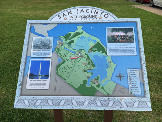 Wir verliessen Houston und fuhren zum San Jaqinto Memorial, einem Park auf den ehemaligen Schlachtfeld, wo Texas in 20 Minuten seine Unabhängigkeit von Mexico erlangte und Rache nahm für Goliad undAlamo. Das Monument steht offenbar auf dem Schulplan in Texas. Das Gelände war überlaufen mit Schulkindern, jede Klasse mit einer anderen T-Shirt-Farbe.