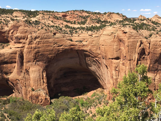 Chrigu legte einen Ruhetag ein und wir fuhren mit unserem Jeep Compass los in Richtung Monument Valley. Die zweistündige Autofahrt unterbrachen wir mit einem Besuch des Navajo National Monument. Eine Felsensiedlung war der Kern des Monuments.