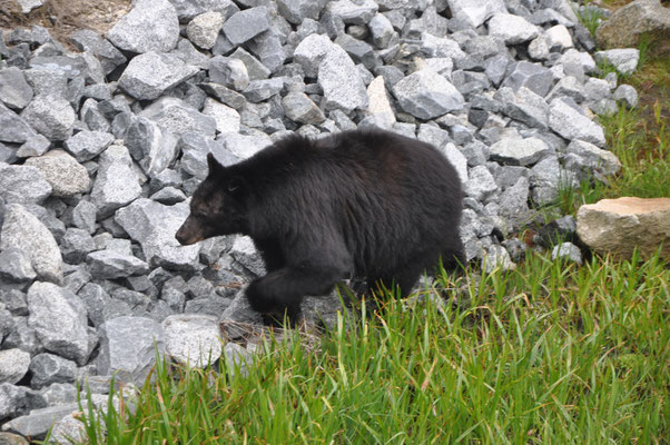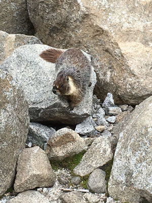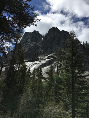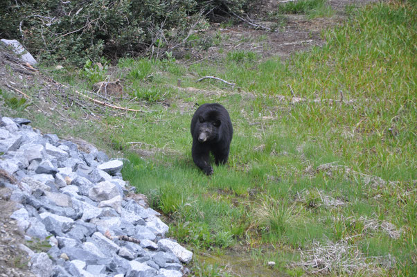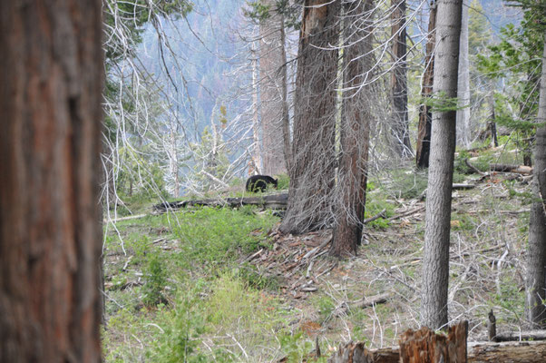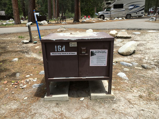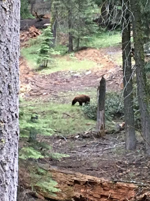 Erster Programmpunkt war die Wanderung zu den Tokopah Falls. Am Ende des Trails kamen wir beim Waserfall an und machten eine Pause in der Gesellschaft ziemlich frecher Marmots sprich Murmeltiere. Zurück im Camping machten wir uns fahrbereit und fuhren zum Parkplatz des General Sherman Tree. Dieser riesige Sequoia ist der weltweit grösste Baum. Wir liefen zum General und nahmen dann den Shuttle zum Sequoia Museum. Zurück mit dem Shuttle und Mike glaubte, einen Bären gesehen zu haben. Also mit dem WoMo hin zu der Stelle und ja, da war einer. Etwas weit weg, aber dafür ein richtiger Schwarzbär. Wir mussten uns nun auf den Weg machen und den Park verlassen. Aber zuerst sahen wir auf einer Lichtung nochmals einen Bären und dann gleich noch einen. Dieser kam uns dann sehr nahe!