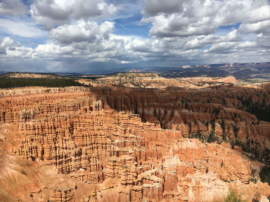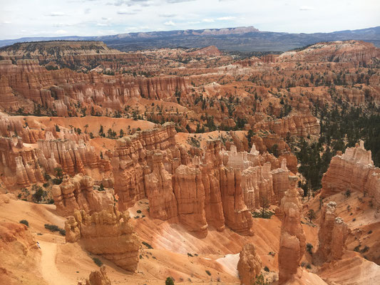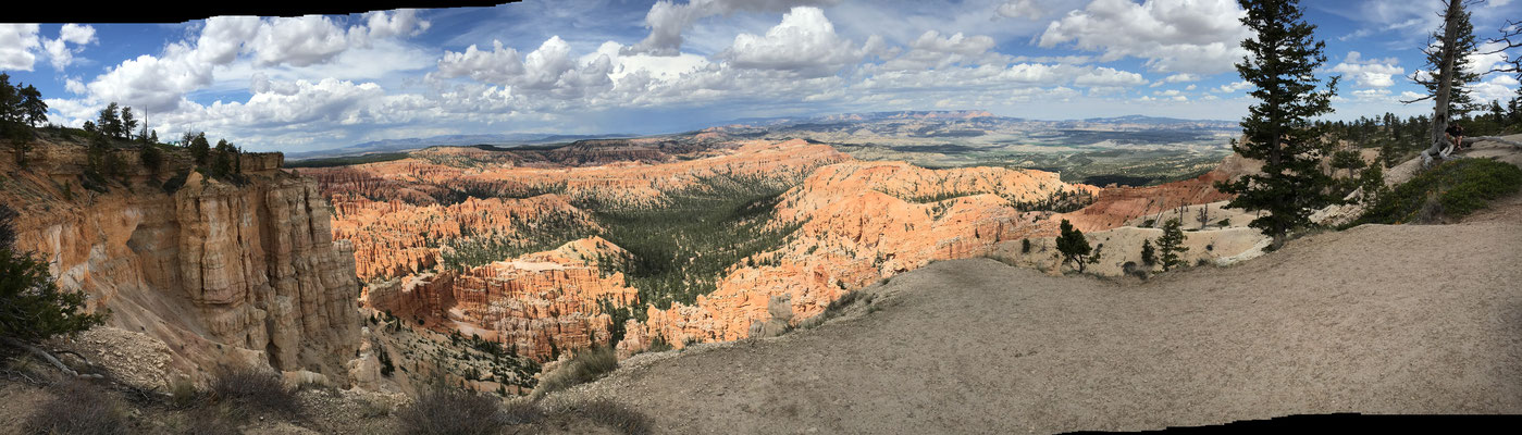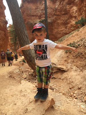 Mit dem Shuttle fuhren wir ganz nach hinten an den Rand des Canyons. Da aber die Wanderung bzw. der Wanderweg dort geschlossen war, machten wir nur noch einen kleinen Marsch dem Rand entlang und gingen dann im Village im Hallenbade des Ruby's Inn Hotel baden.