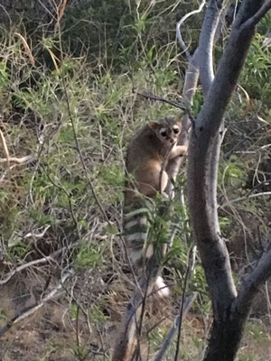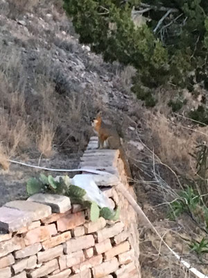 Nach der Wanderung gings zurück in die Lodge. Wir hatten noch eine Überraschung für Valerio: eine Pinata (siehe Bildergalerie). Wir assen wiederum im Restaurant und genossen dann den Sonnenuntergang. Von unserem Balkon aus konnten wir dann einen Red Fox beobachten, der in unserem Garten darauf spekulierte, etwas Essbares zu bekommen. Er bekam natürlich nichts, ausser Konkurrenz durch einen Ringtail, der wohl mit gleicher Absicht auch im Garten auftauchte. Wir beobachteten die beiden eine Weile bis es dunkel wurde.