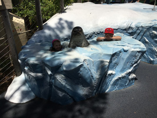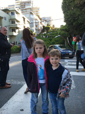 Wieder zurück auf dem Festland besuchten wir den Pier 39 und seine Seelöwen. Weiter ging's zur Lombard Street (Papa, warum müssen wir das anschauen gehen?) und zurück ins Hotel. Hier kam für Valerio und auch für Alessia das Highlight des Tages: ein "Schwumm" im Hotelpool (draussen im Innenhof, Wasser ok, Luft A...kalt....). Mama Claudia ging dann noch kurz ins Lieblingsrestaurant der beiden (mit dem goldenen M) noch etwas zum Essen holen (und für Papa Mike gab es sogar ein Crab Sandwich vom Hafen!!!)und dann war Nachtruhe. Alle schliefen gut, nur Mike war schon etwas nervös, wartete am nächsten Tag doch der 30-Füsser auf uns...