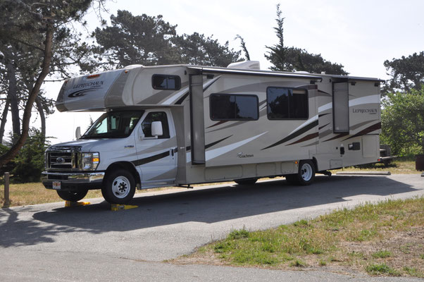 Der Tag war da! Mit dem Taxi (unser Gepäck verunmöglichte die Fahrt mit dem OeV...) fuhren wir in den Vorort San Leandro und übernahmen unser "Monster". Eine Baslerin erklärte uns das Gefährt (mehr schlecht als recht, wie sich noch ein paar Male zeigen sollte...) und los fuhren wir. Die Fahrt ging gut und frohen Mutes bezogen wir unser erstes Nachquartier am Sunset State Beach.