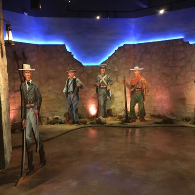 Inmitten der Downtown steht die ehemalige Mission, die 1836 Schauplatz war eines 13tägigen Kampfes von rund 200 texanischen Verteidiger gegen eine mexikanische Armee von rund 1800 Mann unter dem Kommando von General Antonio Lopez de Santa Anna. Die Verteidiger wurden von Colonel William Travis, dem berühmten Messerhelden David Bowie sowie dem sagenumwobenen Davy Crockett - Trapper, Indianerkrieger und Kongressabgeordneter - angeführt. Nach 13 Tagen fiel The Alamo und die Verteidiger liessen alle ihr Leben. Kurz darauf wurde die mexikanische Armee in San Jaqinto von der mittlerweile zusammengerufenen Armee der Texaner unter Sam Houston - dank den 13 Tagen von Alamo hatte er die nötige Zeit zum Aufstellen der Armee - in knapp 18 Minuten besiegt und Santa Anna gefangengenommen. "Remember the Alamo" war der Schlachtruf der Texaner, der bis heute durch Texas hallt.