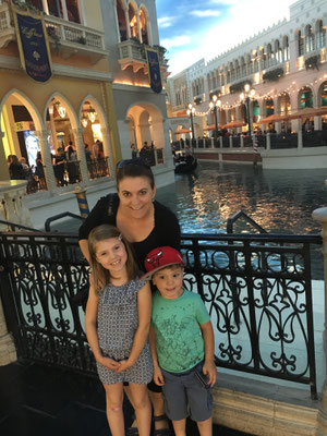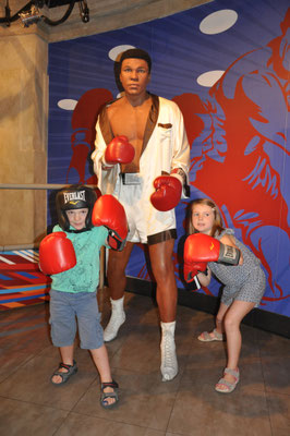 Danach stellten wir unser Monster wieder auf den Camping und fuhren mit dem Bus zum Strip. Als erstes besuchten wir Madame Tussaud. Danach spazierten wir über den Strip und besichtigten die verschiedenen Hotels. Im Kinder Casino des Excaliburs knackten wir zweimal den Jackpot und erlebten unsere Kinder so fröhlich wie noch nie!