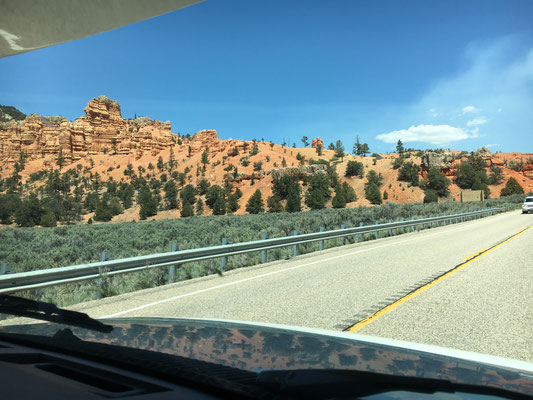 Auf dem Weg zum Bryce Canyon durchquerten wir den Red Canyon im Dixie National Forest. Er ist der kleine Bruder vom Bryce. Gerne hätten wir eine der einladenden Wanderungen gemacht, aber die Zeit war zu knapp. So blieb nur der Besuch im Visitor Center und das Einsammeln von Material für das nächste Mal!