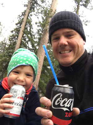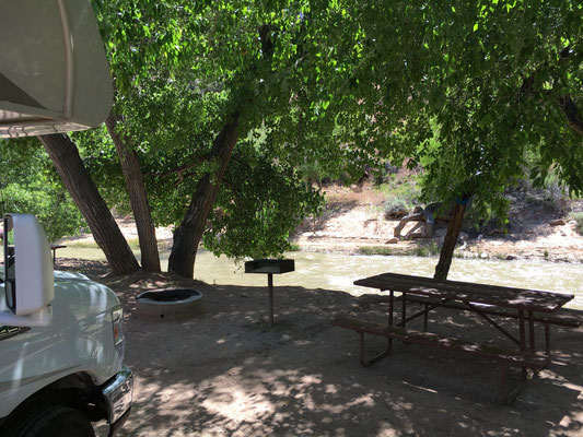 fuhren mit dem Shuttle zum Campground. Wir spielten noch am Fluss vor unserem WoMo und dann war auch dieser Tag vorüber.