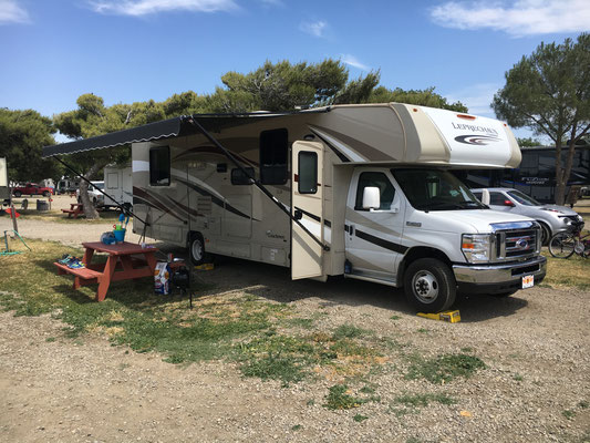 Zurück im Wohnmobil erwartete uns die Klimaanlage, obwohl zu sagen ist, dass die Temperaturen im Frühling auch im Death Valley noch erträglich sind. Kein Vergleich zum letzten Besuch, als zwei arme Studenten auf dem staatlichen Campground im Zelt übernachteten...