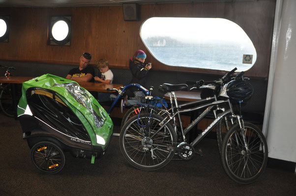Der mittelschwere Rundweg (4,3 km) Weg ist teilweise sehr schmal und steil. Rangers waren daran, den Weg stellenweise zu erneuern. Die Aussicht vom kleinen Plateau aus war sehr schön. Mit leichtem Regen waren wir hinauf gestiegen, ohne Regen ging es wieder runter. Eine Glace war der Lohn, auch die Sonne war wieder da. Zurück auf dem Campground war Spielen am Strand und auf dem Spielplatz angesagt.