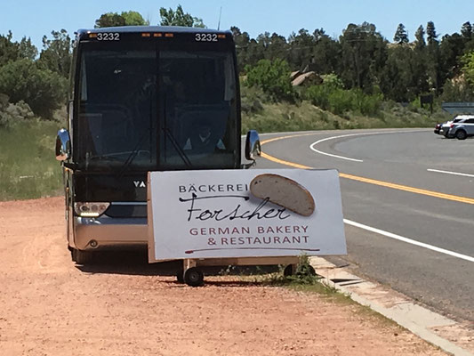 Von Kanab ging es weiter Richtung Bryce Canyon. Einen Stopp machten wir bei der deutschen Bäckerei Forscher in Orderville. Hier assen wir "deutsches" Brot mit amerikanischem Kaffee. Leider waren die Schinkengipfeli nicht wie von den Kindern erwartet....