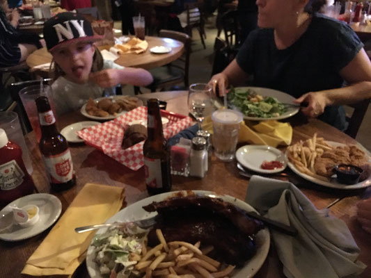 Eine weitere Attraktion in San Antonio ist der Riverwalk. Ein Flüsschen führt durch die Innenstadt und daran gelegen ist ein Restaurant nach dem anderen. Wir assen in einem texanischen Steakhouse das Abendessen. Es war fein, aber die Portionen viiiel zu gross.