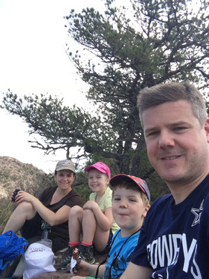 Morge im Zimmer fuhren wir zum Trailhead des Lost Mine Trails. Die Wanderung führte auf den Gipfel eines kleinen Berges mit schöner Sicht auf den Nationalpark. Alessia und Valerio marschierten wacker mit. Speziell war es schon, im Lande der Mountain Lions (auch Cougar oder Puma genannt) unterwegs zu sein. Der Mountain Lion sieht den Menschen als Teil der Nahrungskette. Begegnet sind wir zum Glück aber nur einem Mule Deere, einer Rehart.